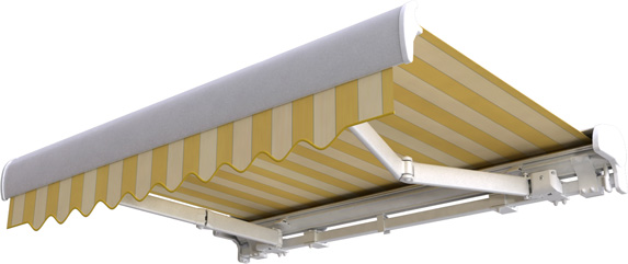 Dodatečná stříška z hliníku zajišťuje ochranu navinuté látky.